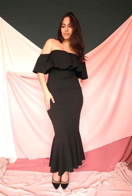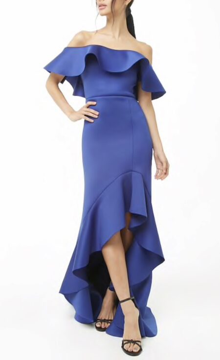 Vestido Semiformal Rojo Vuelos con Hombros Descubierto